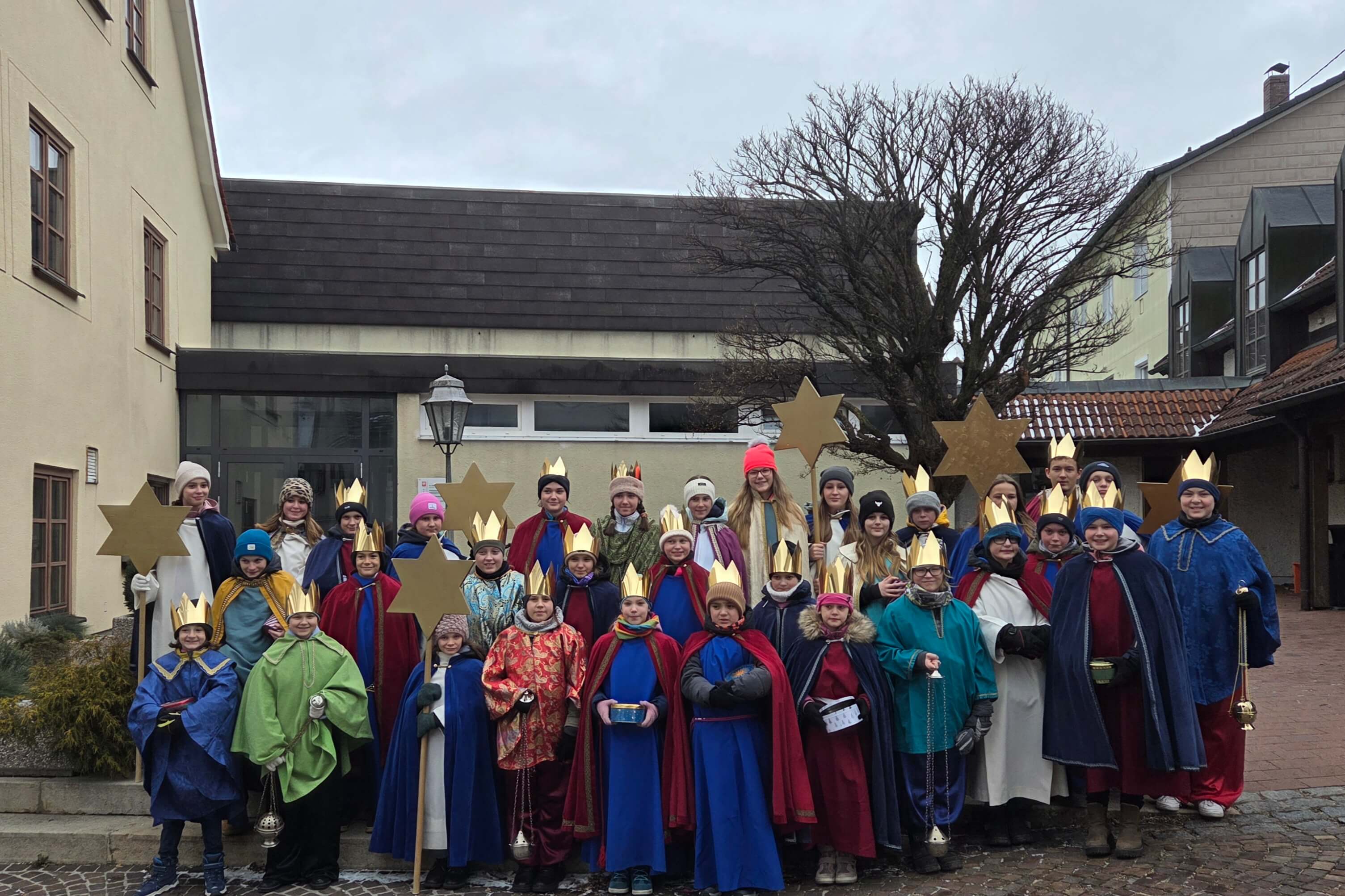 Wenn die goldenen Kronen im Winterlicht glänzen und die Weihrauchfässer schwingen, dann ist es wieder so weit: Die Sternsinger sind wie jedes Jahr unterwegs. Zwischen dem 2. und 6. Januar zogen insgesamt fast 80 Kinder und Jugendliche der Pfarrei St. Michael durch die Straßen der Marktgemeinde, um den traditionellen Segen „Christus Mansionem Benedicat“ (Christus segne dieses Haus) in die Häuser zu bringen.